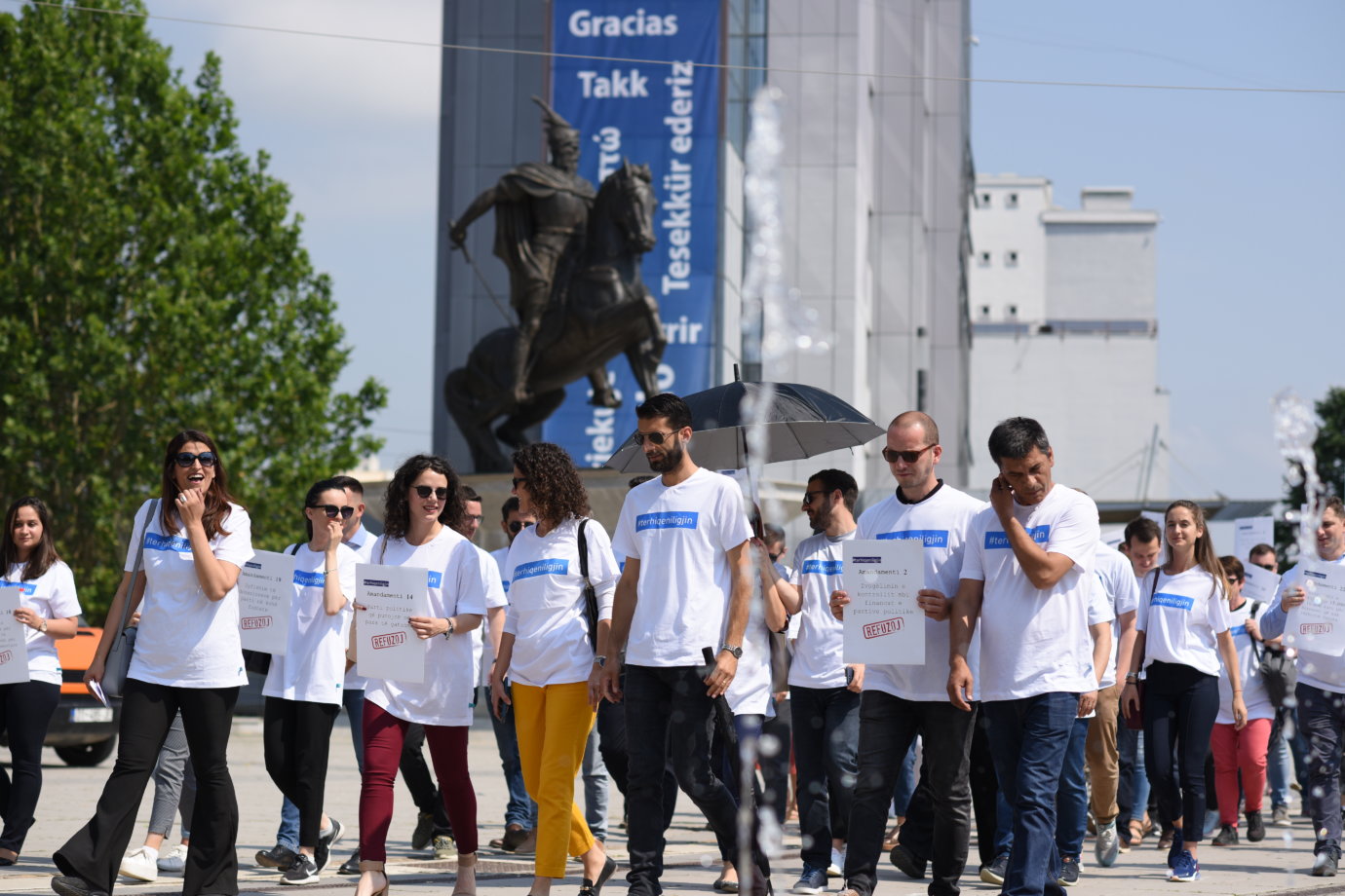Pochod Democracy in Action, první vepředu zprava ředitel KDI Ismet Kryeziu | zdroj: KDI